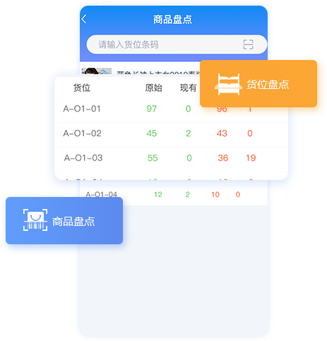 支持商品盘点和货位盘点。盘点默认会保存草稿,确认无误后,