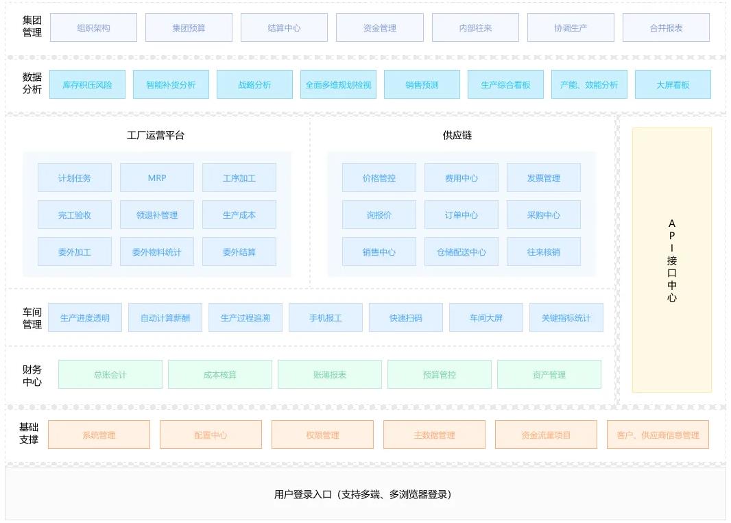 全业务流程覆盖:无缝衔接采购、生产、仓储、销售、财务等核心环节,实现供应链全链路数据实时协同,消除信息孤岛。